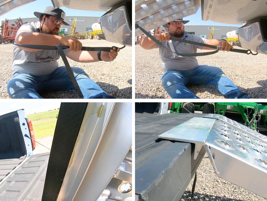 Safety should always be a priority when handling heavy equipment. Ramps should come equipped with secure attachments for the tailgate, a high load capacity, and safety straps for stability. Take, for instance, the ramp shown here, which can carry up to 1500 pounds, far exceeding any lawnmower's weight. This ramp also boasts a rubber pad and an L bracket that firmly secures it to the tailgate, ensuring the ramp stays put as you drive your mower up.