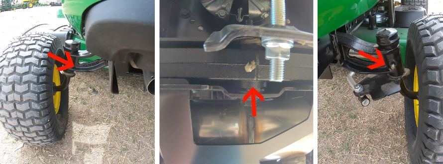 Tractor-style mowers, like the John Deere X320, primarily require greasing at two places: the front axle and the mower deck.