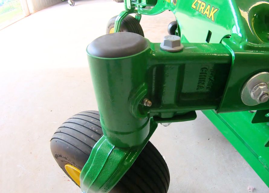 Zero-turn mowers, like the John Deere Z9, also require greasing at the front wheels and the mower deck.