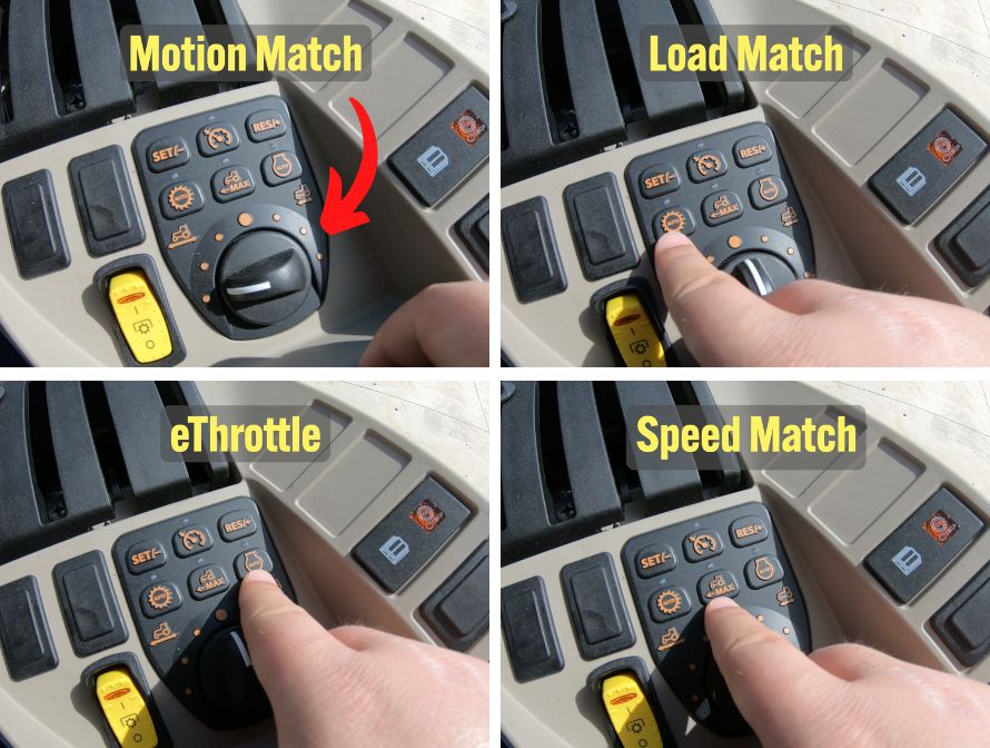 Load Match: Ideal for heavy loader work, this feature raises the engine's RPMs, preventing stalling under heavy loads.