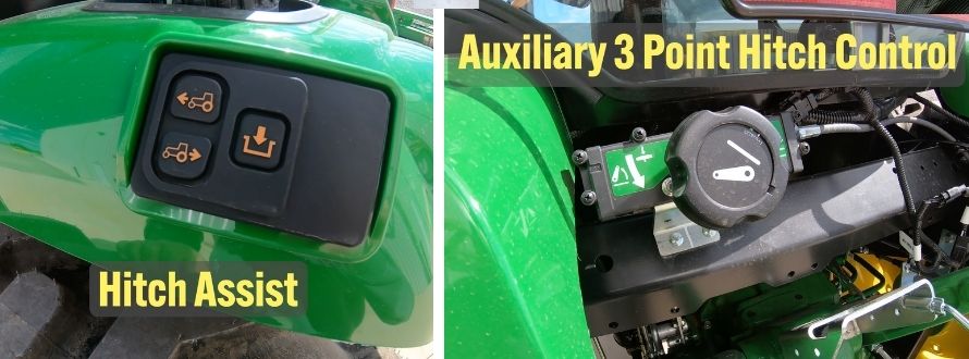 The 4R Series tractors come equipped with a unique feature: hitch assist. Located on the driver's side fender, this system allows you to move the tractor without being seated, simplifying the process of hooking up rear implements. Additionally, the three-point assist lets you adjust the three-point arms from outside the tractor, making solo operations smoother.